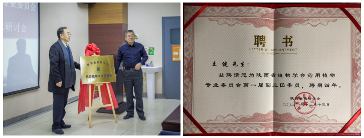 在此次研讨会上,首先由陕西省植物学会理事长岳明教授宣布了陕西省植物学会关于药用植物专业委员会成立的批复,并介绍了专委会组成及章程等。陕西师范大学副董事长董治宝和陕西省植物学会理事长岳明为陕西省植物学会药用植物专业委员会揭牌,并为专业顾问颁发聘书。好博体育经理王健教授被聘为陕西省植物学会药用植物专业委员会副主任委员。