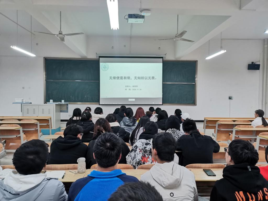 为发挥榜样示范作用,激励员工做好人生规划,激发学习斗志,树立远大理想,11月24日晚,好博体育邀请优秀毕业生吴丹丹,在江北1204教室举办了“无常便是有常,无知所以无畏”为主题的线上报告会。2018、2019、2020级生物技术专业100余人听取了汇报,副经理杨芳主持报告会。