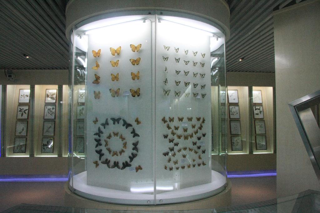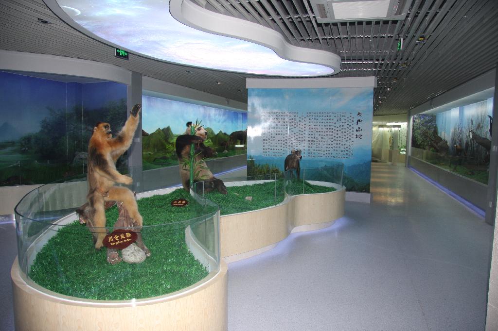 目前新馆馆藏面积340平方米,设立了秦岭四宝、哺乳类、鸟类、鱼类、昆虫、菌类、植物类七个展区,收藏各类生物标本1000余种,近3000号,其中属于国家级保护物种的标本有:金丝猴、大熊猫、羚牛、朱鹮、黑鹳、大灵猫、鬣羚、林麝、珙桐、红豆杉、金裳凤蝶等。