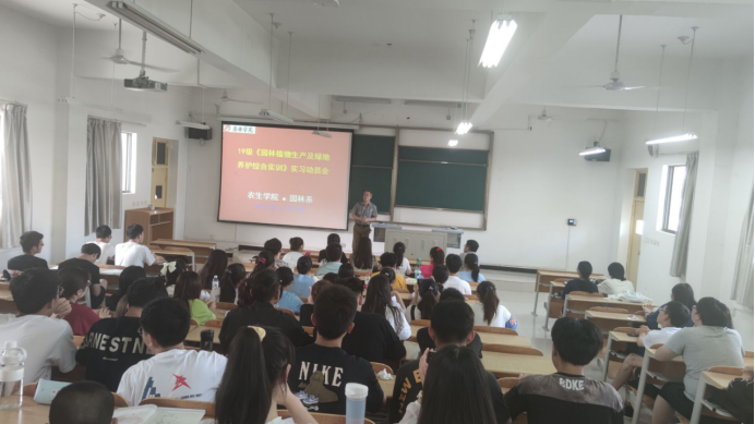 6月8日,公司园林系在江北校区1215教室召开了2019级《园林植物生产及绿地养护综合实训》实习动员会,实习指导老师袁海龙、沈大刚和张海军参加会议。