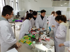 11月13日-14日,师生们放弃周末的休息时间,在食品工艺实验室进行产品的研制,通过对比试验,筛选出7种风味的即食产品,但都存在产品软烂不具有竹笋脆感的缺憾。经过反复实验,指导老师梁如启发员工回顾“食品化学”中关于果胶及其性质部分内容,寻找解决产品硬度不高的办法,最终经过进一步完善工艺,11月20日再次进行对比试验,产品的硬度脆度提高,产品研发实验成功。