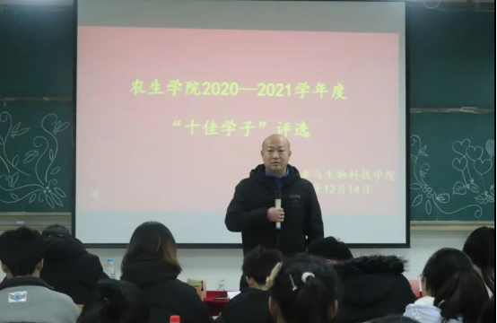 12月14日晚,好博体育在江北校区1301教室举办了2020-2021学年度“十佳学子”评选活动,党总支书记孙保本、学工办主任谭自力、辅导员金清民、团总支员工分会干部及2021级员工参加。