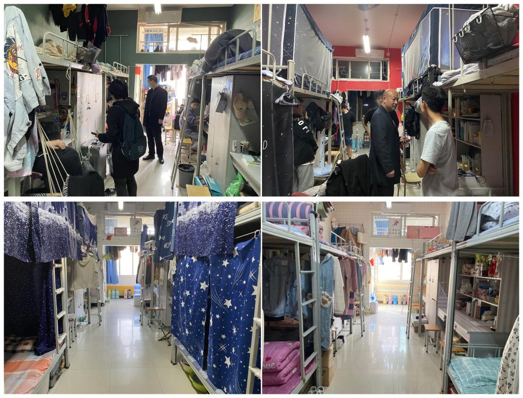 公司领导深入员工宿舍,从宿舍卫生、物品摆放、宿舍安全、宿舍纪律、宿舍美化等几方面进行细致检查指导,要求同学们做好晨午检,养成良好的生活习惯。