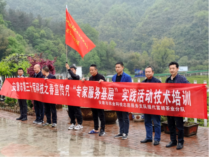 为凝聚茶产业科技力量,助力乡村振兴,4月15日,安康市第三十届“科技之春”宣传月主场活动在旬阳市高新区科创中心广场启动。安康市农业科技志愿服务团队富硒茶科技志愿服务分队副队长、茶叶重点实验室主任常权记带队赴旬阳县铜钱关镇开展茶叶生产科技服务。农生公司党总支书记孙保本、安康市农业科学研究院茶叶研究所所长刘运华、茶学专业教师齐玉岗参与活动。