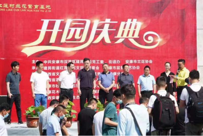 经过几个月的筹备,5月29日上午,红莲村兰花繁育基地盛大开业。汉滨区政协主席蒋平、市建设局副局长段平安及建民社区、安康市盆景协会、奇石协会领导及兰花爱好者等100多人参加了庆典仪式。