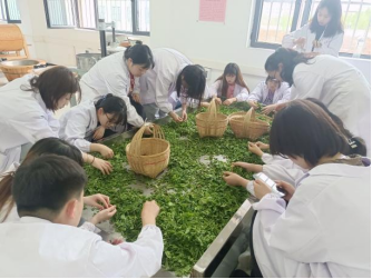 5月1~5月5日,齐玉岗和吴冲老师在茶叶加工实验室讲解绿茶、红茶、白茶手工及机械加工技术要点,随后同学们分组进行练习。