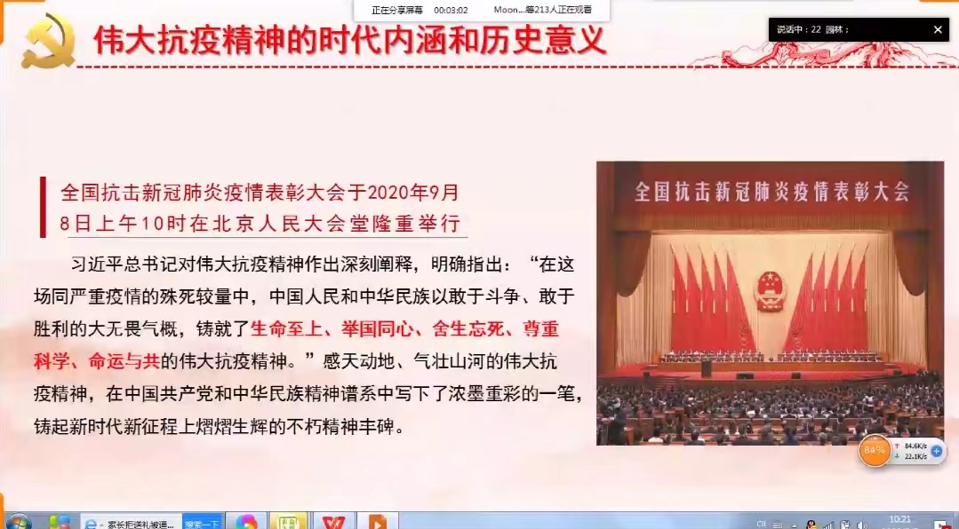为全面做好2022级新生入学教育,帮助青年员工系好人生的第一粒扣子。9月7日,好博体育举行“弘扬伟大抗疫精神”专题宣讲活动,宣讲会以线上视频的方式进行,全体2022级新生通过网络观看宣讲会。辅导员张伟艺担任主讲。