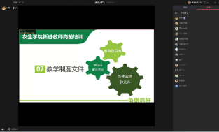 首先,杨芳副经理介绍了专业建设与专业认证的关系、课程建设的内容;强调了课程教学大纲对教师教学工作具有纲领性指导作用;要求新老师课前应认真阅读教学大纲完成备课,按照规范完成教案书写;通过分享《分子生物学》教案,提高新进教师对教案规范书写的认知。其次,杨经理分享了公司教学规范指南和教学制度文件,并对重点内容进行了解读,为新进教师了解公司相关教学规章制度、树立严防教学事故的思想奠定了基础。最后,杨经理希望新进教师能够尽快融入好博体育大家庭,努力工作,幸福生活。