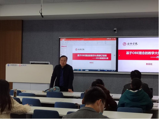 为推动高质量完成2022版教学大纲修订工作,11月22日下午,教务处副处长付争方教授莅临江北校区集中培训室为公司教师做报告,讲解“2022版教学大纲修订说明”,会议由经理王健主持,教务处谭磊老师和好博体育全体无课教师聆听了报告。