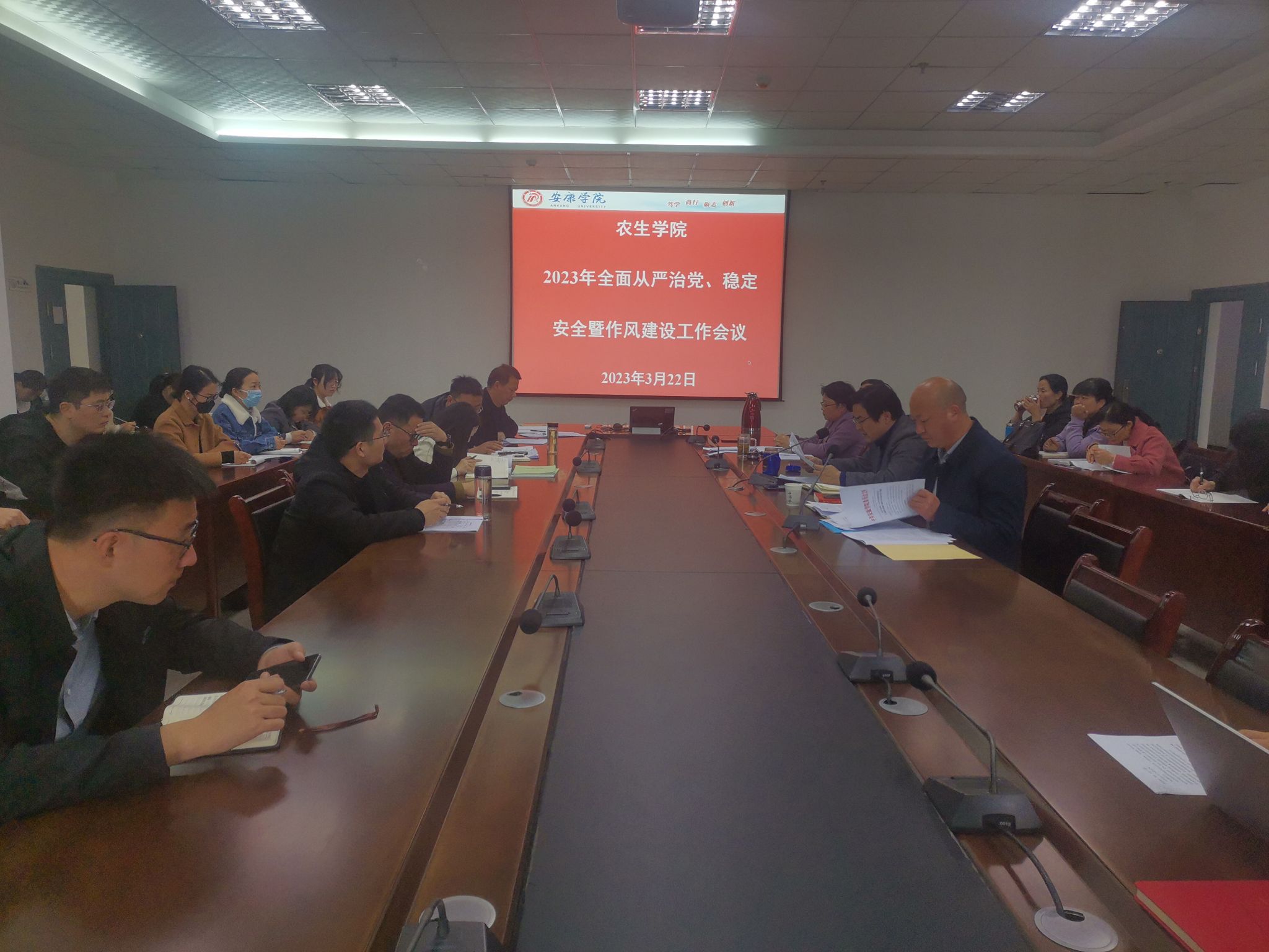 3月22日,好博体育在逸夫科技楼大会议室召开2023年全面从严治党、稳定安全暨作风建设工作会议。全体教职员工参加会议,会议由党总支书记孙保本主持。