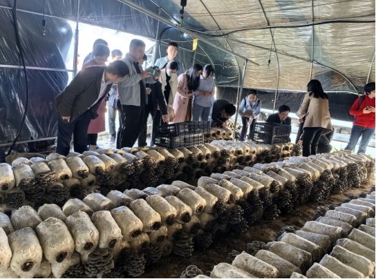 下午,全院教师深入农业园区,分别在汉阴县双河口镇三柳村参观了田园综合体稻虾生产基地,在涧池镇参观了陕西秦山珍硒食用菌生产基地,期间各专家教授与农业园区专家就产品生产、技术、储存、销售、深加工等方面进行了深入的交流,并提出了可行性建议。