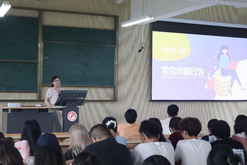 大会上,郭杨娟向同学们介绍了什么是电信诈骗?电信诈骗的常见形式?如何识别防范电信诈骗?以及被诈骗之后的补救措施。通过详细介绍“非正常购物类”“游戏装备类”“冒充特定人员”“刷单返利类”等诈骗形式,让同学们切身感受到了电信网络诈骗的危害性和潜伏性,同时结合多个发生在员工身上的真实案例,总结出不法分子行骗的惯用伎俩和手段,提醒广老员工,骗局就潜伏在你我身边,要时刻保持理智头脑。