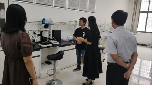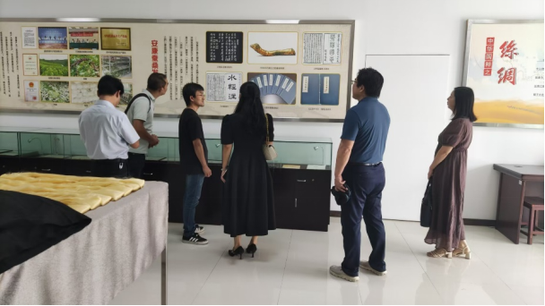 9月11日上午,汉阴县经贸局李娉科长、锦汉蚕丝被加工厂许安全董事长等一行4人来公司洽谈蚕桑校企合作项目。一行人首先参观了蚕桑重点实验室的蛋白质分析实验室、副产品开发实验室、植物病虫害防治实验室及丝胶蛋白提取实验室及蚕桑科技展览馆。