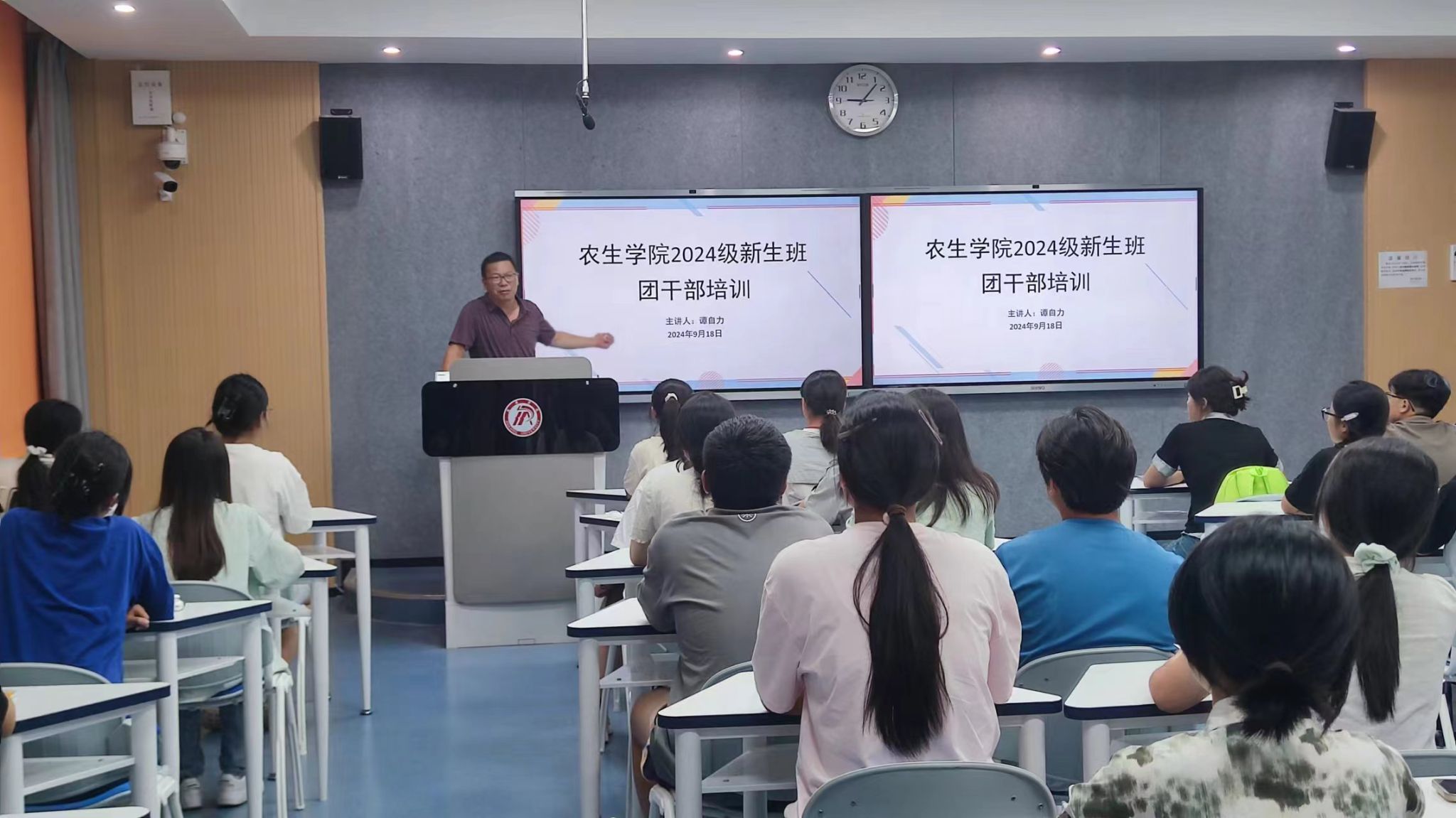 为促进新生员工班团干部尽快转变角色,提升管理服务效能,扎实做好班风、学风建设。9月18日晚,好博体育在1217教室举行2024级新生班团干部培训,35名班团委干部接受了培训,培训由学工办主任谭自力担任主讲。