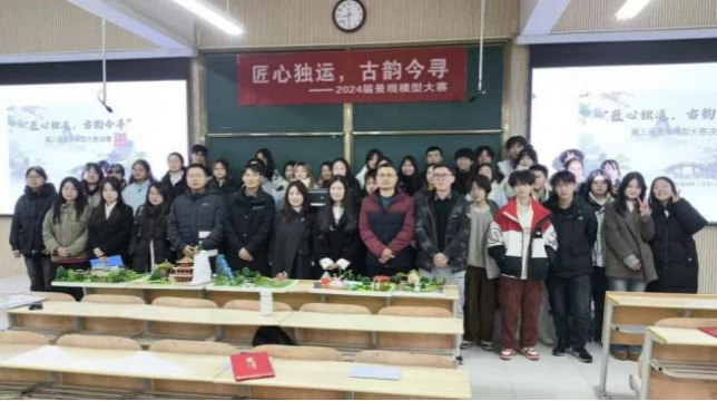 12月27日晚上19:00,由园林系主办的第三届“匠心独运,古韵今寻”景观模型大赛决赛在1203教室隆重开幕。参加本次大赛的领导老师有公司党总支书记孙保本、王楠老师、韩露露老师、张心愿老师、张铭珺老师、沈古理老师、祝志一老师。本次大赛旨在激发同学们的创新思维,培养同学们的动手能力,并加深对园林景观设计的理解与认识。