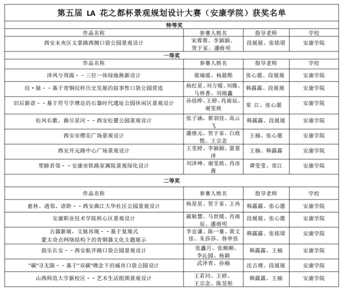 附表:第五届LA花之都杯景观规划设计大赛(好博体育官方)获奖名单