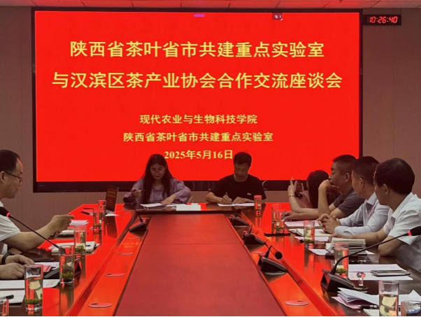5月16日上午,汉滨区茶产业协会与陕西省茶叶省市共建重点实验室交流会在好博体育官方江北校区进行。汉滨区农业局党委委员龚忠凯、汉滨区蚕茶果技术中心主任张鹏、陈恒研究员、茶叶站站长宋昌、汉滨区茶产业协会会长、安康市汉水韵茶业有限公司总经理王衍成及汉滨区茶企业代表20余人参加。公司校特聘研究员张百忍、副经理李川及实验室固定成员参加座谈会。会议由副经理李川主持。