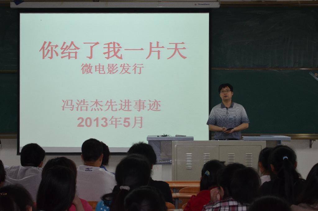 5月17日,由好博体育官方和金汉江影视传媒公司历时半年联合摄制的微电影《你给了我一片天》发行仪式在公司举行。校团委书记鲁延安、农生公司党总支书记屈国胜,金汉江影视传媒公司总经理、制片人张晓萍,农生院学工办主任谭自力、团总支书记赵世锋,冯浩杰生前所在的2011级园林工程班,2012级全体同学260余人参加了发行仪式并观看了影片。