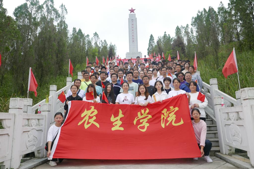 纪念碑前,全体师生肃穆而立,怀着对烈士无比敬仰的心情,认真听取了马克思主义公司冯水贞同学讲述牛蹄岭战役的背景和经过,感受我党艰苦卓绝的奋斗历程,缅怀革命先烈的伟大精神和他们的丰功伟绩。